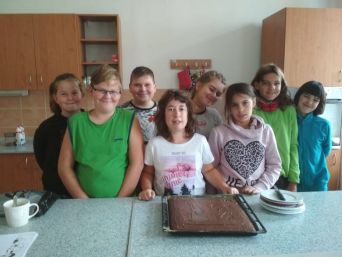 V hodině pracovního vyučování nás paní učitelka naučila, jak se peče perník. Každý z nás si zkusil, jak se váží na váze, jak se udělá těsto, jak vymazat plech nebo jak se rozpustí čokoláda. Během čekání na upečenou buchtu jsme si udělali kakao a malovali obrázky. Buchtu jsme si snědli a byla výborná, těšíme se na další pečení.